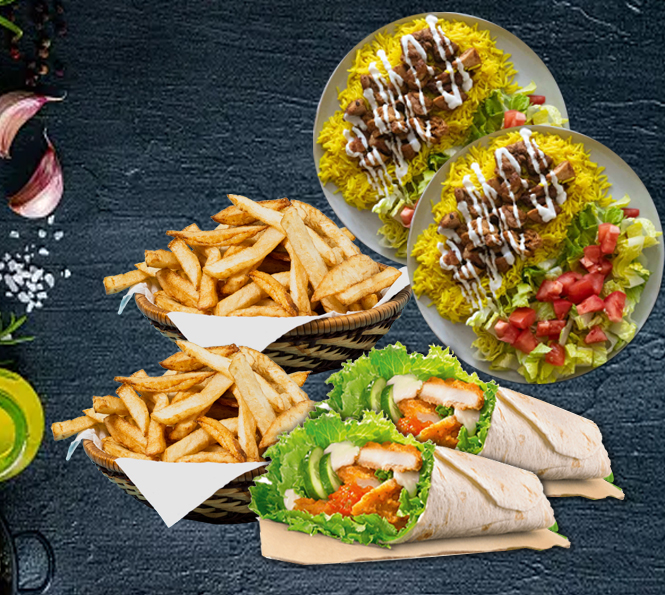 “Indulge in our Chicken on Rice—tender, seasoned chicken served over fluffy, aromatic rice for a savory, satisfying meal. Whether enjoyed on its own or with your favorite sides, this dish is sure to rock your taste buds.”